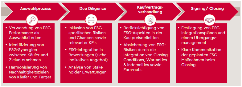 ESG-Aspekte erfahren vermehrte Beachtung im Transaktionsumfeld und sind über den gesamten Zeitablauf von hoher Relevanz.