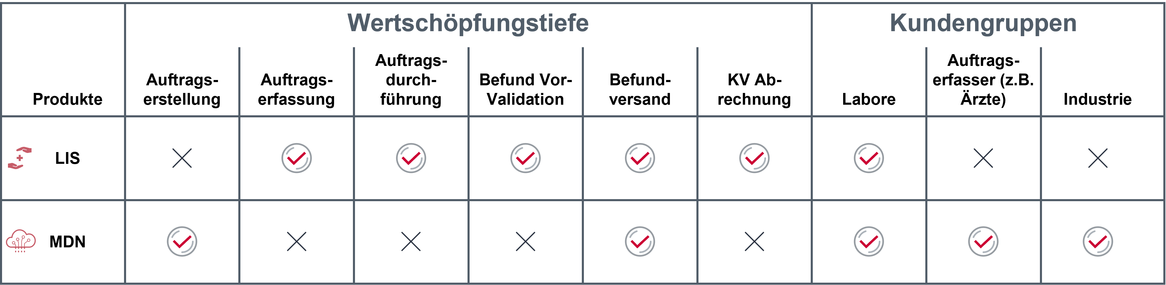 Eine Besonderheit im LIS-Markt ist die Ergänzung des MELOS-LIS durch das Melos Diagnostic Network (MDN), welches die Wertschöpfungskette wie in folgender Grafik dargestellt erweitert: