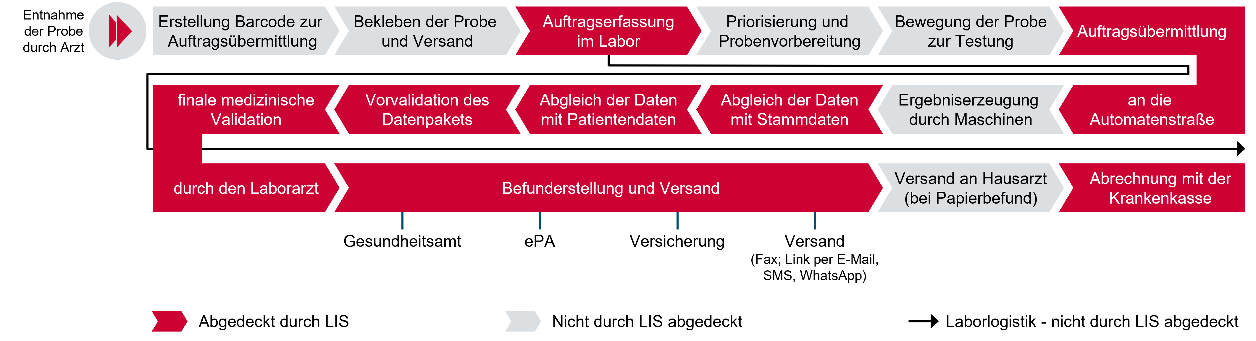 Die Labor-Logistikkette sowie die Anwendungsbereiche von LIS stellen sich wie folgt dar: