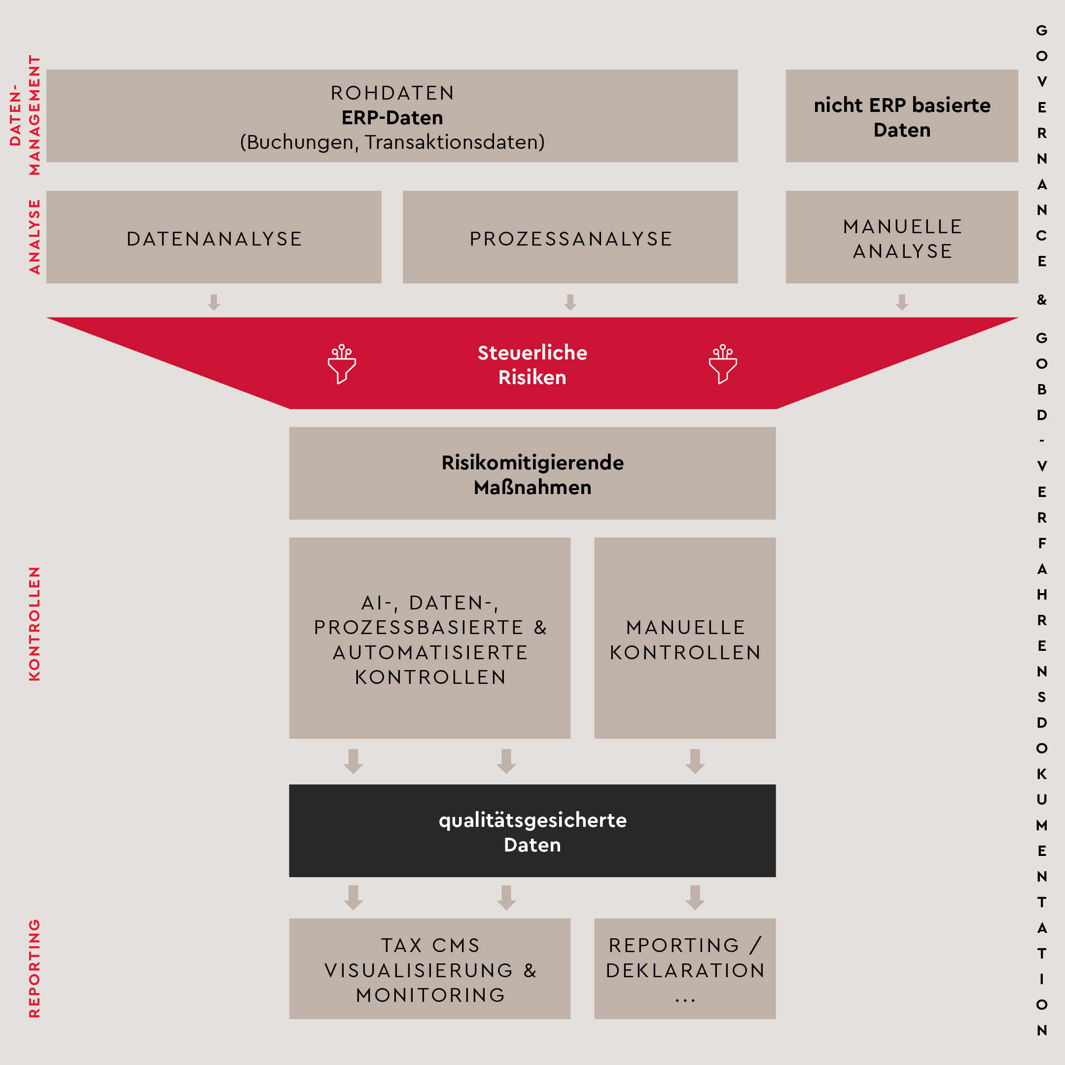 Unserer Wahrnehmung nach liegt dies vor allem daran, dass die meisten Tax CMS vor allem aus manuellen Stichprobenkontrollen bestehen, deren kontinuierliche Durchführung und Dokumentation – oft noch in Excel basierten Risiko-Kontroll-Matrizen – in der Praxis mit erheblichem Aufwand verbunden ist. Abhilfe schafft in der Regel nur die Digitalisierung!