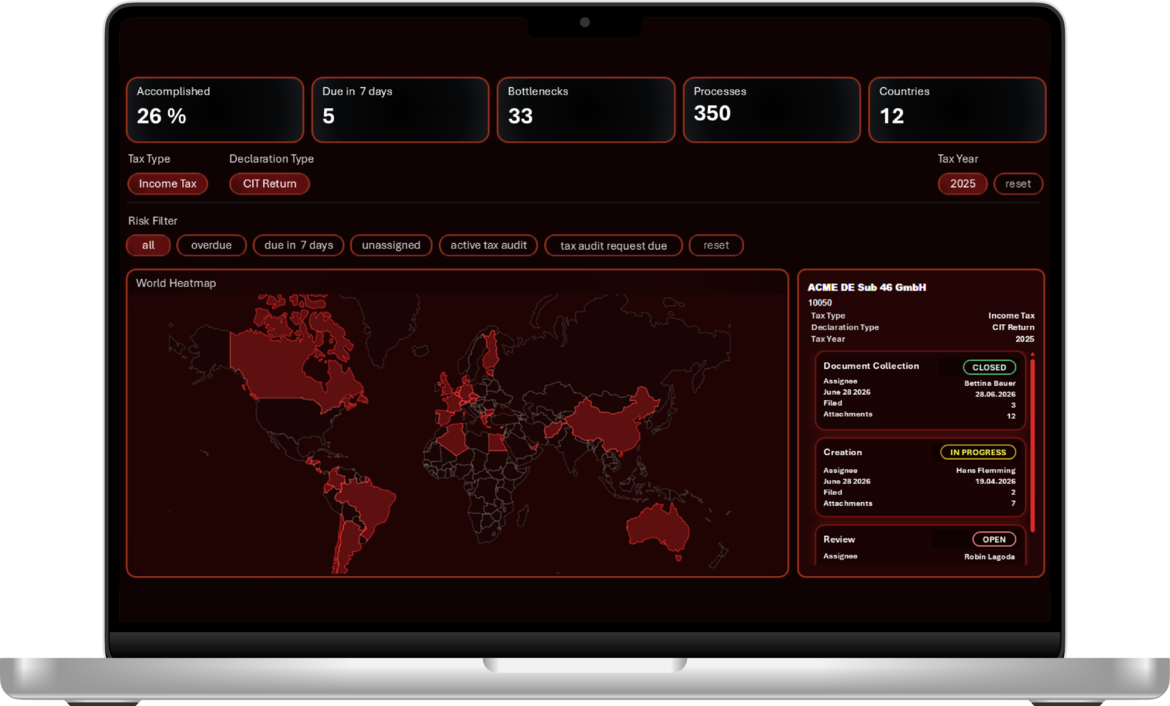 Track tax returns worldwide in real time – with deadline tracking and automatic alerts instead of Excel spreadsheets